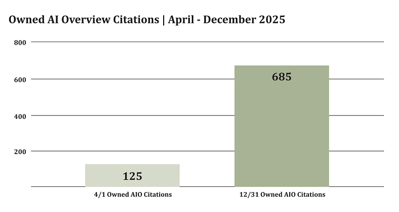 At the midway point of 2025, our client had a total of about 20 owned citations and 35 brand mentions in AI Search.